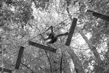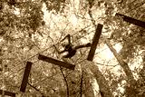 Girl doing adventure park tree climbing parcours