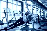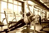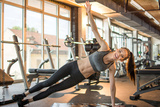 Attractive fit slim sporty girl practicing yoga asana Vasisthasana ,side plank. Young woman doing pilates exercises at gym