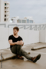 Young Fit Trendy Guy Modeling on Top of Downtown Parking Garage