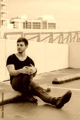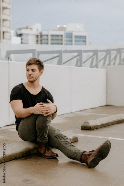 Young Fit Trendy Guy Modeling on Top of Downtown Parking Garage