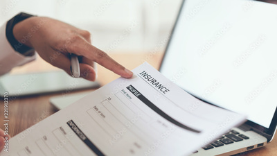 Business man in the office fill out insurance policy. To prevent future incidents.