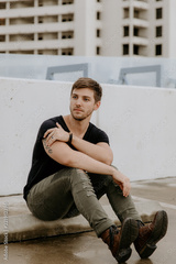 Young Fit Trendy Guy Modeling on Top of Downtown Parking Garage