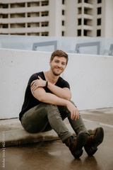 Young Fit Trendy Guy Modeling on Top of Downtown Parking Garage