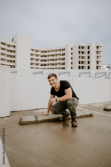 Young Fit Trendy Guy Modeling on Top of Downtown Parking Garage