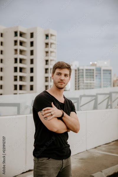 Young Fit Trendy Guy Modeling on Top of Downtown Parking Garage