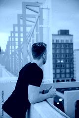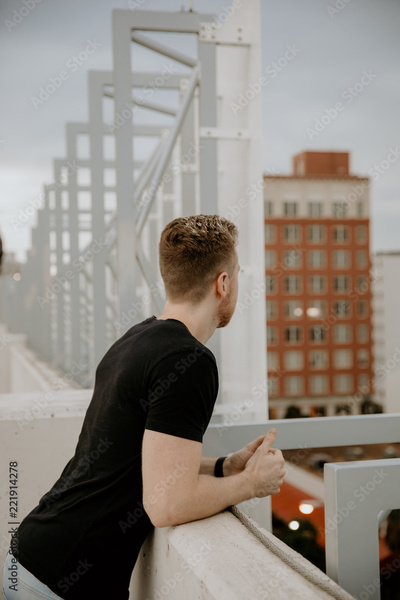 Young Fit Blonde Short Hair Male Model on Top of Parking Garage Downtown