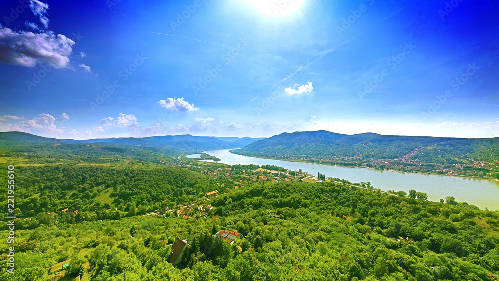 Beautiful panoramic image of the river valley of Duna, at Visegrad, Hungary.