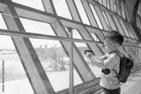 Little traveler, cute smiling little Asian 2 years old toddler boy child having fun playing with airplane toy while waiting for his flight at gate in terminal at airport, Traveling with kid concept