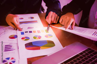 Working concept. Businessman and business women are consulting or brainstorming together on paperwork at office on desk. Workmates are helping for solving problems of business. They’re taking together