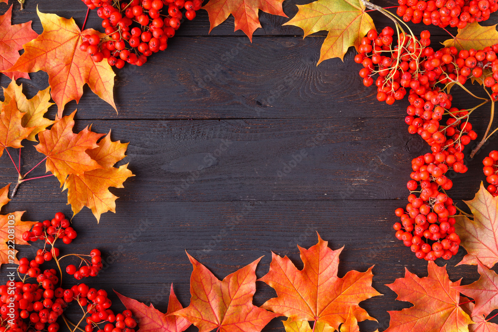 bright autumn leaves and text; generic fall background, perfect for sale banners, wedding invitation or save the date template, season greeting card