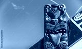 The Maori art carving decoration in Whakarewarewa the living Maori village in geothermal area of Rotorua, New Zealand.
