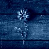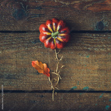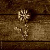 Flower concept made of pupmkin and autumn yellow leaf against wooden background. Season concept.