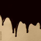 Pastel pink background with black dripping paint. Minimal makeup or fashion concept.