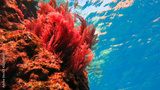 Swaying of red corals at shallow depths