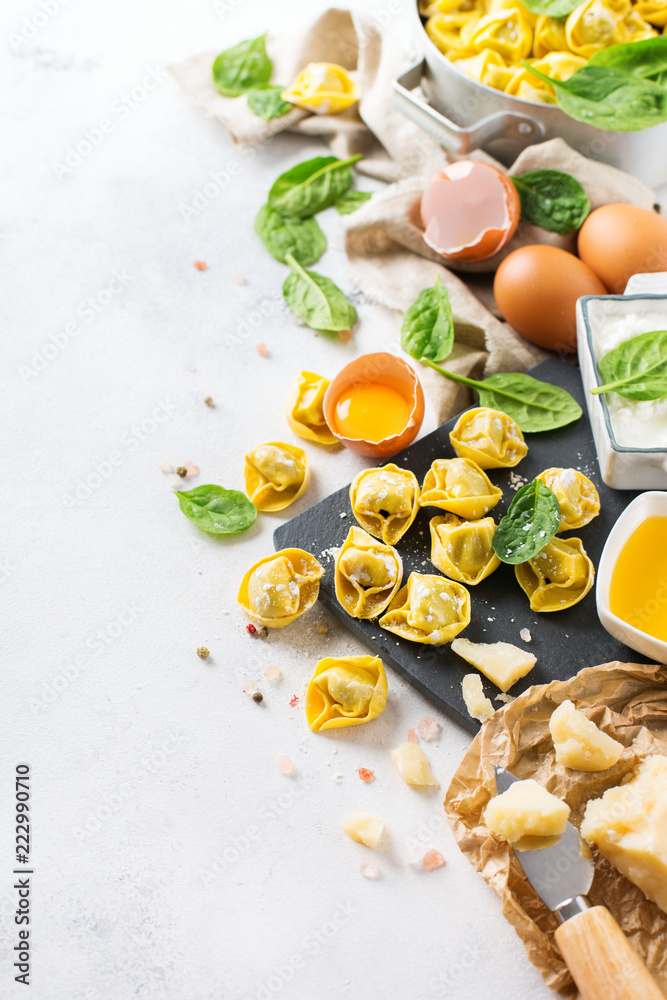 Italian food and ingredients, handmade tortellini with spinach and ricotta