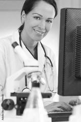 Female Scientist or Doctor Using Computer In Laboratory