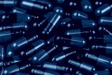 Pile of red-black capsule pills. Antibiotics resistance. Drug use with reasonable. Global healthcare concept. Antibiotics drug resistance. Antimicrobial capsule pills. Pharmaceutical industry.