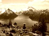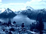 Mountain blue lake in British Columbia, Canada. Garibaldi Lake. Panorama Ridge