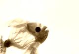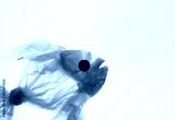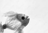Fish from a plastic bag. Blue color, translucent. The concept of saving the environment, pollution of the oceans, seas and rivers. White background for copy space text