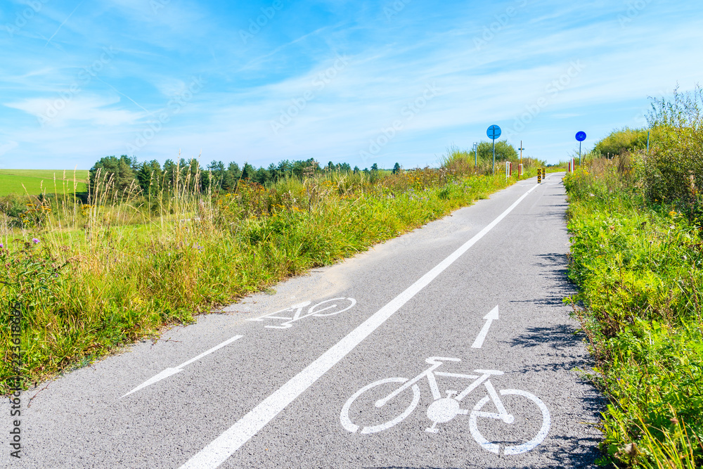 Cycling track in beautiful summer landscape of Tatry Mountains near Czarny Dunajec, Poland