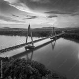 Budapest, Hungary - Megyeri Bridge over River Danube at sunset with beautiful dramatic clouds and sky