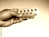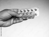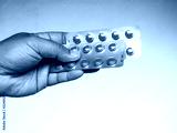 drug capsule medical in hand man wood background