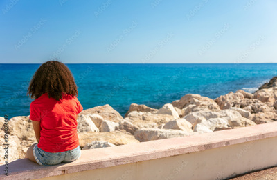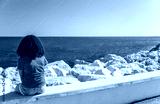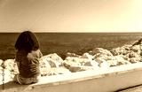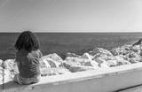 Young Woman Girl Teenager Sitting Wall Looking to Sea