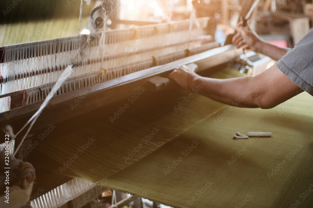Traditional textile manufacture Weaving thread for the textile industry.