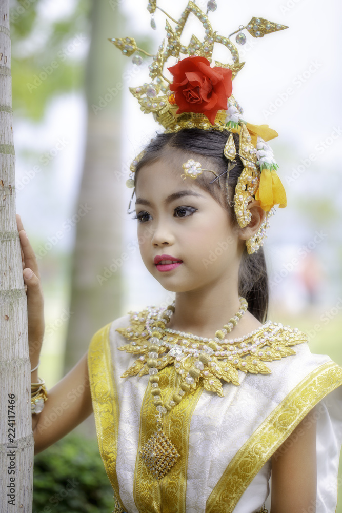 Thai girl dressed in khon dress, Thai classical dance show.