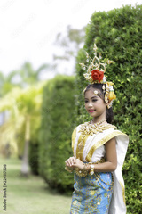 Thai girl dressed in khon dress, Thai classical dance show.