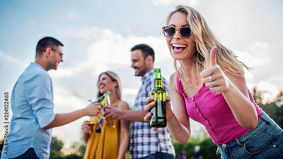 It's party time. Group of young people enjoying in party outdoors. Lifestyle, fun concept