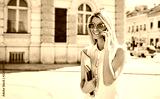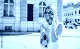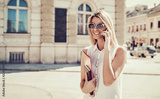Portrait of a young woman with mobile phone and folders. Education, business, lifestyle concept