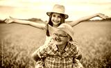 Childhood. Happy little girl and her grandmother enjoys together in a good mood. Family, lifestyle concept
