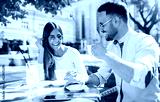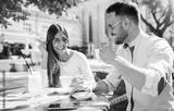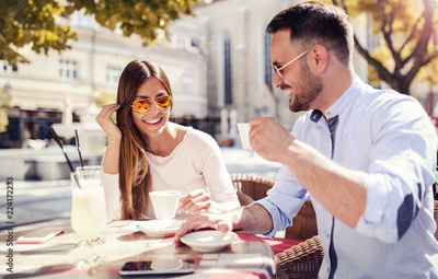 Romantic couple at the meeting in a cafe. Dating, love, relationships