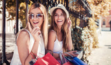 Shopping time. Young women shopping together. Consumerism, shopping, lifestyle