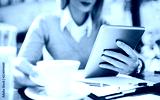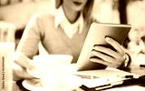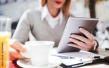 Business woman on coffee break in a cafe. Business, education, lifestyle concept