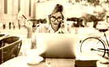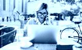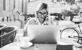 Business woman on coffee break in a cafe. Business, education, lifestyle concept