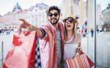 Shopping time. Young couple in shopping. Consumerism, love, dating, lifestyle concept