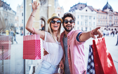 Shopping time. Young couple in shopping. Consumerism, love, dating, lifestyle concept