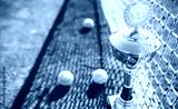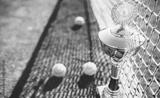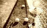 Tennis balls and cup on the tennis court. Sport, recreation concept