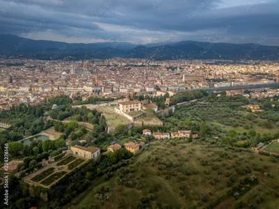Florence Firenze aerial panorama landscape of the Renaissance city center with the Belvedere fort