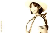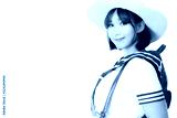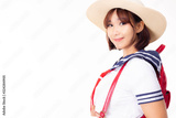 Portrait charming beautiful student woman. Attractive beautiful girl wears Japanese student uniform, hat, backpack in summertime. Lovely woman love study and enjoy school. isolated on white background