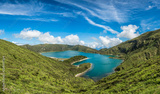 Panoramic view of Fogo lake in Sao Miguel Island, Azores, Portugal