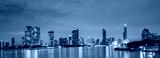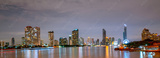 Bangkok cityscape of river front modern building in Thailand. Beautiful night scene of river,downtown building, sky and white clouds in Thailand. Asia travel and tourist. Bangkok modern office.