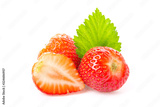 Strawberry with green leaf isolated on white background