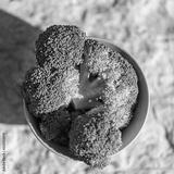 Healthy Green Organic Raw Broccoli Florets Ready for Cooking. Bunch of fresh green broccoli in bowl on rustic outdoor background of a stone table. Top view.