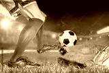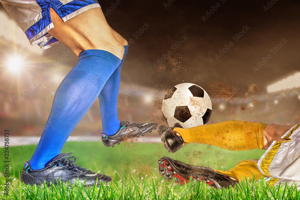 Soccer Players Competing Football in Outdoor Stadium With Copy Space