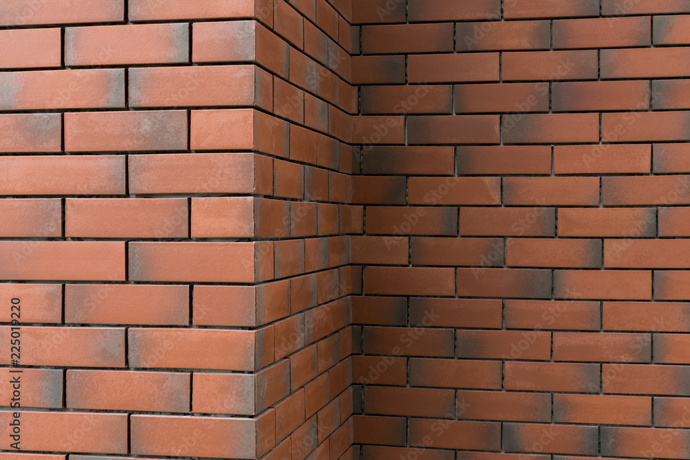 Corner of red brick wall texture with empty space for copy or text. Background