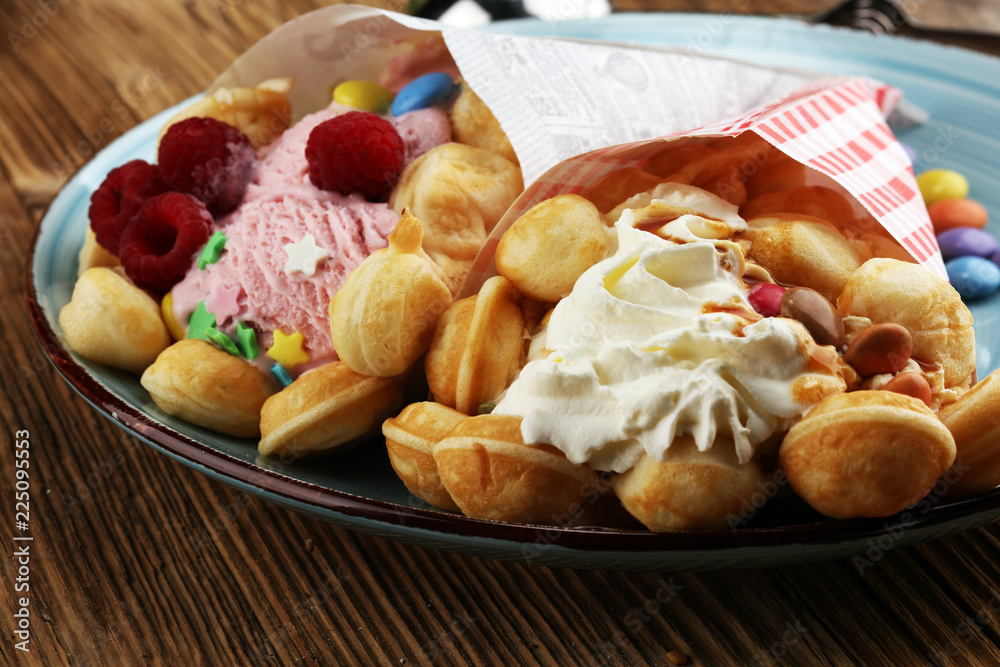 Hong Kong style egg waffle on wooden board. bubble waffle