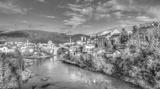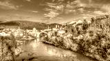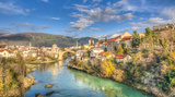 Mostar Bosnia medieval town view with the old stone bridge over the river